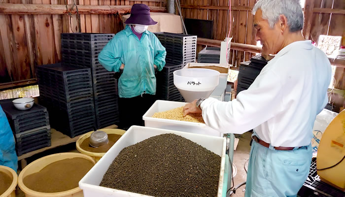 苗のパレットを作っています。 投稿者: kamefarm2021年3月8日2021年3月25日お知らせ 今年の田植え用の苗のパレットを、姉と作成しています。 たまたま、知り合いが遊びにきたので、写真をとってもらったので掲載します。