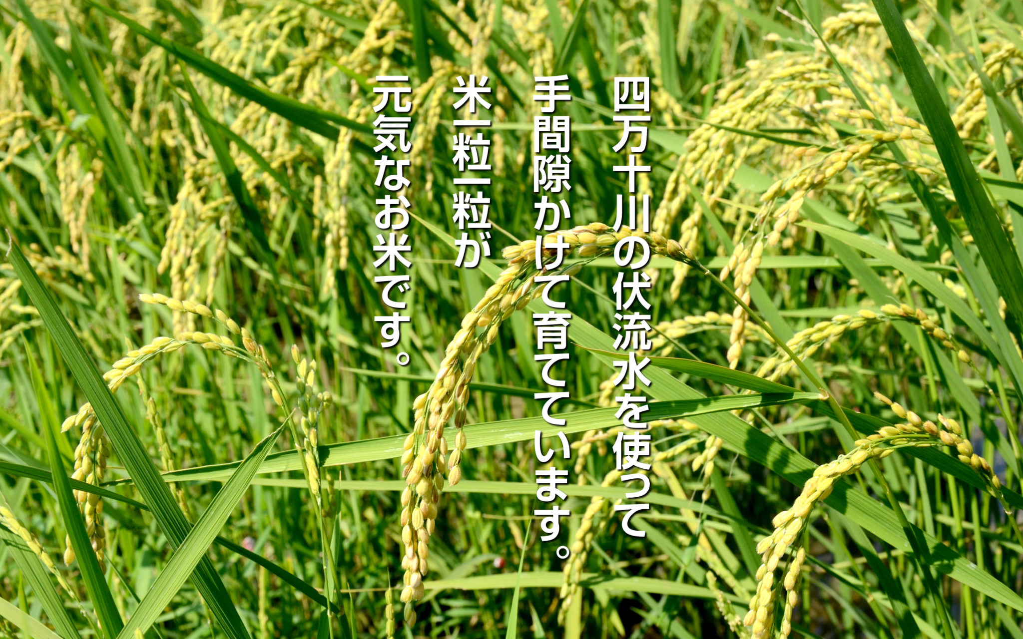 田んぼには清流四万十川の支流からと山からの清水を利用しています。その水質は、田んぼの中には、おたまじゃくしが元気に泳いでいます。